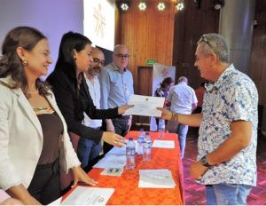 El arquitecto Francisco Jordán exaltó la presencia y el permanente respaldo brindado por directivos del sector del transporte, entre ellos Mayra Gómez de RadioTax y Lucelly Londoño de Taxsur. También, a nombre del Director de nuestra Entidad, arquitecto Rodolfo Torres Puyana, felicitó a los orgullosos 119 conductores que hoy exhiben un diploma más en sus vidas, que les permite el crecimiento personal y profesional y los acredita como EXCELENTES en el servicio y atención al usuario y con la capacitación específica para brindar primeros auxilios a sus pasajeros, en caso de alguna emergencia.
