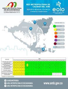 La Subdirección Ambiental del Área Metropolitana de Bucaramanga entrega los resultados de los monitoreos del mes de mayo de 2019, en las cinco estaciones de medición de calidad del aire localizadas en la capital de Santander, Floridablanca y Girón.
