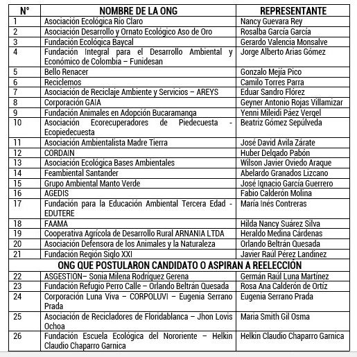 17 de junio | Durante la sesión de la Junta Metropolitana programada para este jueves 18 de junio a partir de las 8:00 de la mañana en el Gran Salón del Centro de Convenciones Neomundo (calle 89 Transversal Oriental Metropolitana, piso 1, barrio El Tejar), se producirá el proceso de elección del representante de las entidades sin ánimo de lucro que tengan su domicilio en el área de jurisdicción y cuyo objeto principal sea la protección del medio ambiente y los recursos naturales renovables (ONG).