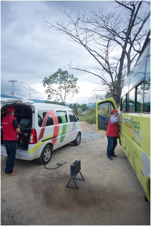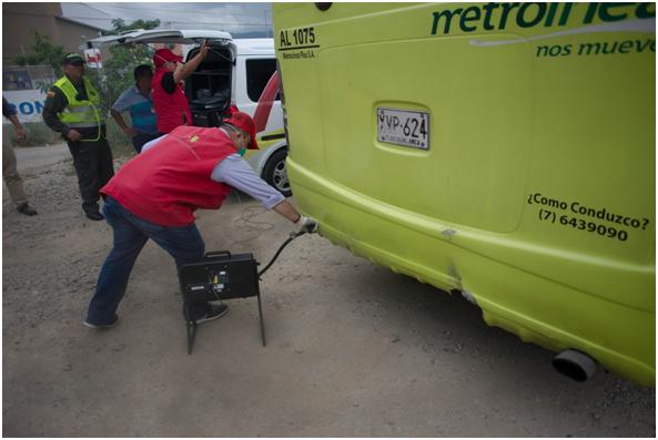 Los primeros vehículos sometidos a este proceso de control, fueron los articulados, padrones y alimentadores vinculados al sistema de transporte masivo, Metrolinea, asignados para prestar el servicio en el municipio de Piedecuesta.