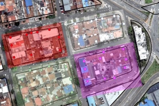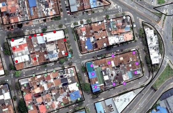 Al asociar los contadores con la manzana más cercana, se genera un mapa de predios. Esta dinámica inmobiliaria de las conformaciones de manzanas prediales será fundamental para la planificación de servicios públicos.