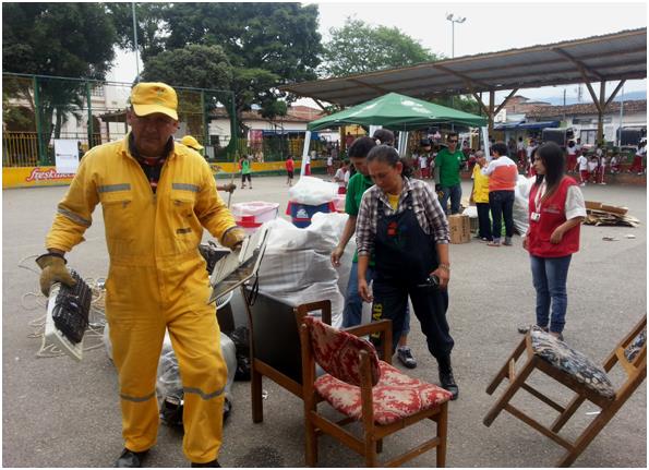 “Además de ese material los habitantes del barrio Girardot llevaron equipos de sonido, televisores, sillas, monitores y computadores que ya no utilizaban en sus casas. La respuesta de la gente fue excelente”, aseguró Nathaly Ariza, Coordinadora del programa de Recuperación del Parques del AMB.