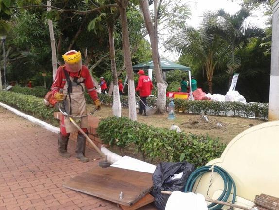 Desde muy temprano las cuadrillas se encargaron de podar árboles y arbustos, limpiar senderos y disponer los desechos de material verde.